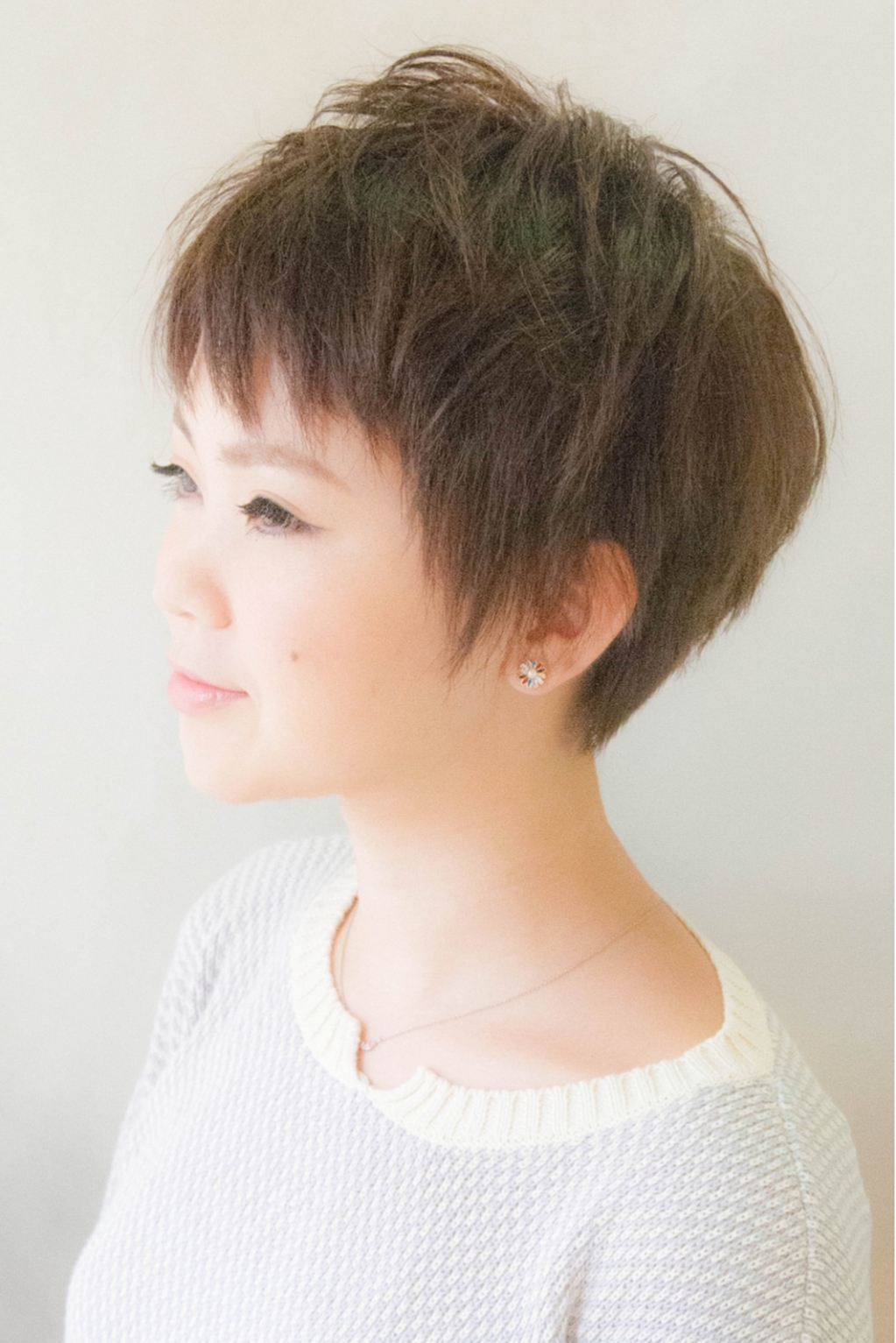 しっかりショートヘアにしたい方は、耳かけでベリーショートのような雰囲気もたのしめる“マッシュベースのショートヘア”がおすすめ! 前髪からサイドにつながる髪があることで、耳かけしたときも丸みのあるシルエットに。 また、えりあしをくびれようにカットすることで、柔らかなショートの印象に仕上がります。 意外と忘れがちだけど大切なのが、普段のスタイリングの方法. 4 再現性カットで乾かすだけで決まる大人ショートヘアの仕上がりは? 41 スタイリング剤とかは何かオススメがあるの?. 襟足の生え際から3㎝ほどを長めに刈り上げて上からかぶせれば写真のように襟足ギリギリのラインのショートボブに。 襟足の髪が多い方、襟足にくせがあって膨らんでしまう方 にもおすすめの切り方です。 今までのショートヘアに満足できていない、襟足にコンプレックスがあるという方は5SCENE 藤田へ ショートヘアをカットしていて思う事は、 皆さん少なからずコンプレックスを.