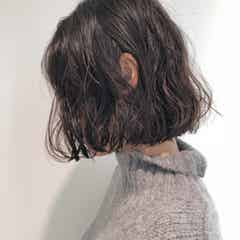 前下がりボブパーマ ゆるっとくせ毛風パーマ 柔らかいニュアンスが出てくれるのでスタイリングが楽 Soco所属 ウェーブパーマ Narumiの ヘアカタログ ミニモ