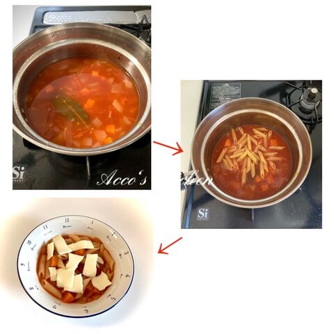 簡単手作りおつまみ ショートパスタのトマトチーズスープ Yukari Mikawa Note