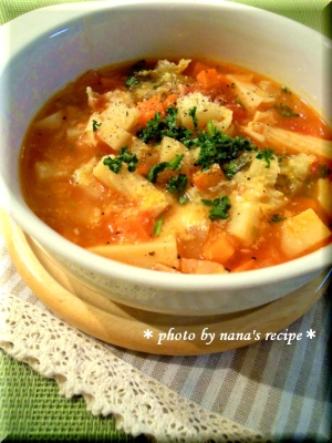 具だくさんショートパスタトマトスープ クラシル