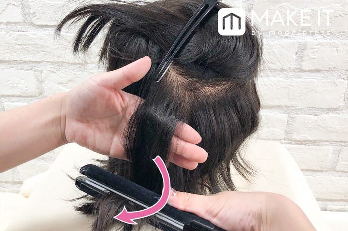 波ウェーブストレートアイロン巻き方 ミディアムアレンジ